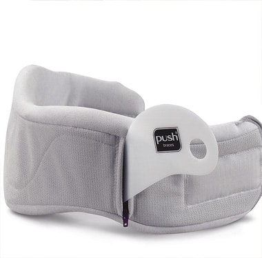 - A detachable semi-rigid plastic stay, which rests between the breastbone and jaw, provides substantial additional support